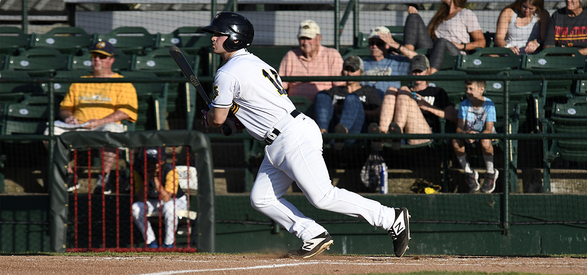 Morgan McCullough singles in the Bees’ first run in the second inning. (Steve Cirinna/Burlington Bees)