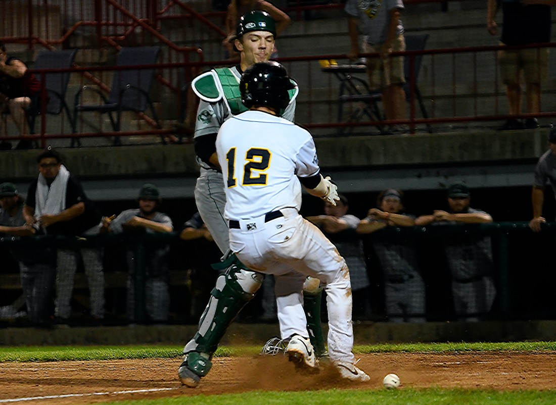 Clinton’s Max Holy walked to open the ninth inning and moved to second on a grounder to shortstop by Justin Conant. Pinch-hitter Jay Beshears hit a grounder back to Bees pitcher Jackson Gray, who threw to third base to try to get Holy, who was attempting to advance on the play. But Gray’s throw got past third baseman Mason Land, and Holy was able to score. An RBI double by Skyler Luna with two outs put Clinton up 10-8.