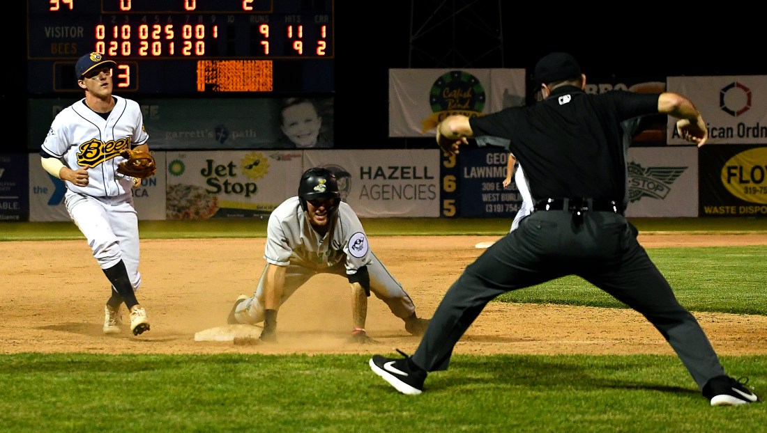 The Bees got to within 8-7 in the seventh on Marcos Sanchez’s ground-rule double that bounced over the center-field wall. Had the ball stayed in the ballpark. Zane Zielinski likely would have scored to tie the game. Instead, Zielinski had to go back to third base. Clinton reliever Casey Perrenoud got Brady Jurgella on a popout and Reid Halfacre on a grounder to Ira at shortstop to end the inning.